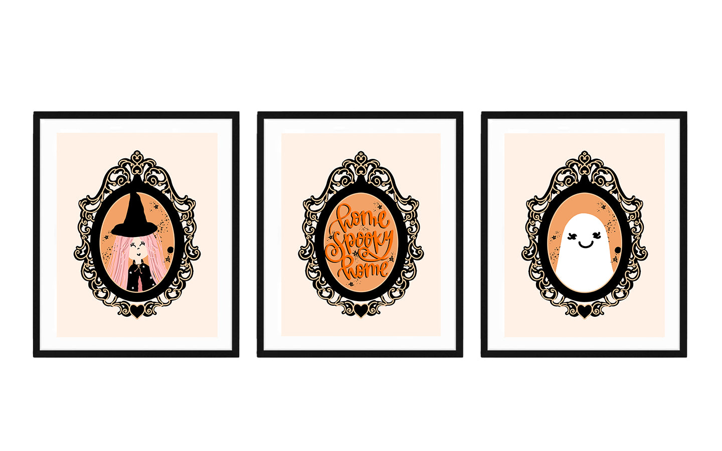 Personaje de Halloween en casa (negro y naranja) | Arte imprimible