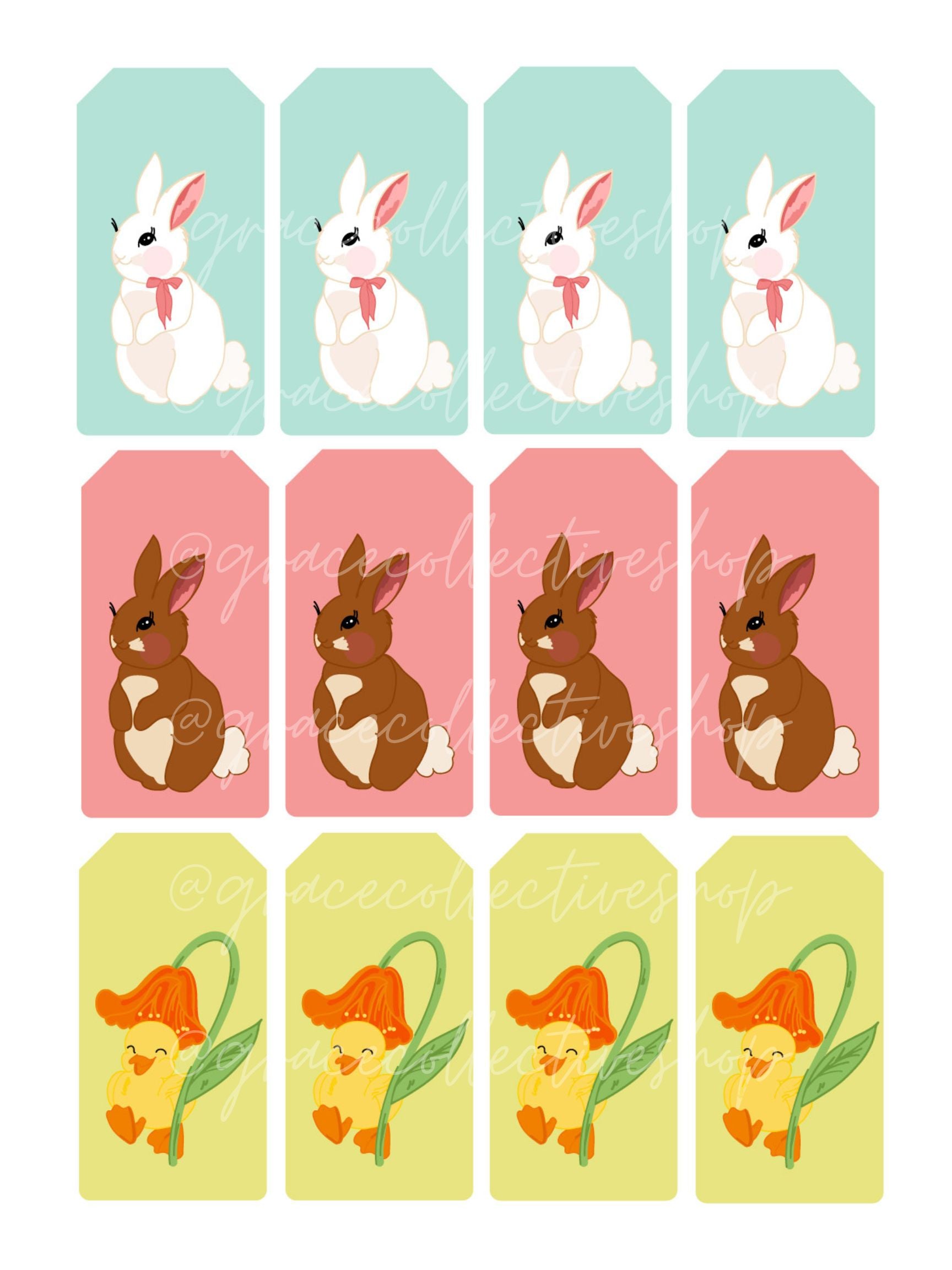 The entire set includes 1 PDF file with 30 pages. It includes pennant flags for your Easter baskets and tags for gifts. It even includes some bunny bait tags! See listing photos for more details.