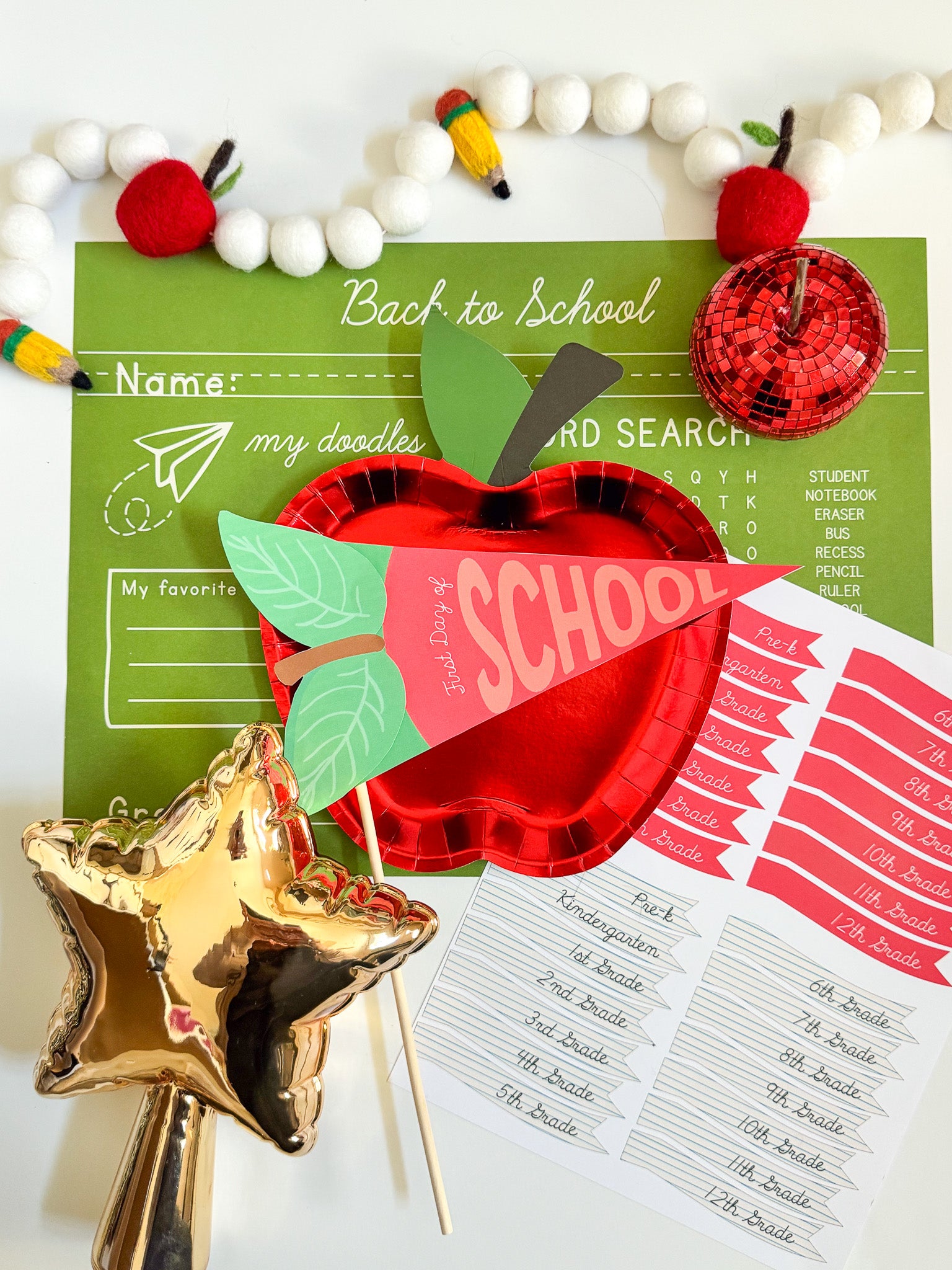 First Day of School | Printable Apple Pennant Flag Set